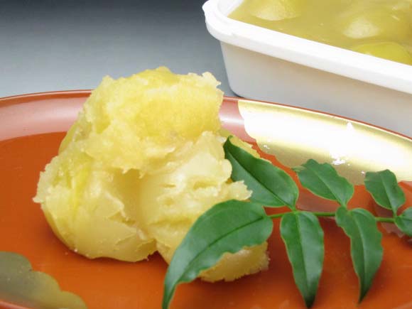 | 栗きんとんの中でも特に美味しいと評判が高い、立花屋の栗きんとんです むき栗・さつま芋・水あめ・砂糖・みりん・かんてんで仕上げた無添加の栗きんとんです 500g入りとたっぷり! お子様にも大人気の逸品です! |